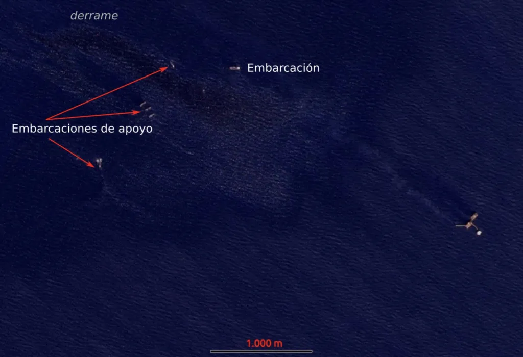 Según el documento, los primeros indicios se registraron entre el 6 y el 10 de febrero, pero fue a partir del día 11 cuando la fuga se intensificó, generando una mancha de más de 50 kilómetros cuadrados.