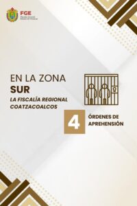 En lo que respecta a la zona sur, la Fiscalía Regional Coatzacoalcos cumplimentó 4 órdenes de aprehensión.
