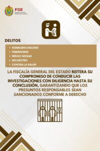 La Fiscalía General del Estado reitera su compromiso de conducir las investigaciones con diligencia hasta su conclusión, garantizando que los presuntos responsables sean sancionados conforme a derecho.
