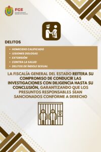 La Fiscalía General del Estado reitera su compromiso de conducir las investigaciones con diligencia hasta su conclusión, garantizando que los presuntos responsables sean sancionados conforme a derecho.