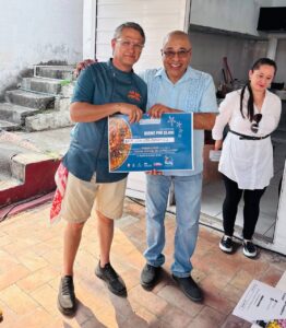 El tercer lugar lo obtuvo el Chef Sebastián Hernández, quien presentó una paella mixta con diversos condimentos como mejillón, jaiba, camarón, pollo y costilla. Dijo que para él ha sido un honor participar en este evento, en el cual obtuvo un primer lugar en 2024. “Hoy vengo con esta propuesta, sumándome a la promoción de nuestra gastronomía, de nuestros sabores y de esta hermosa playa de Chachalacas”.