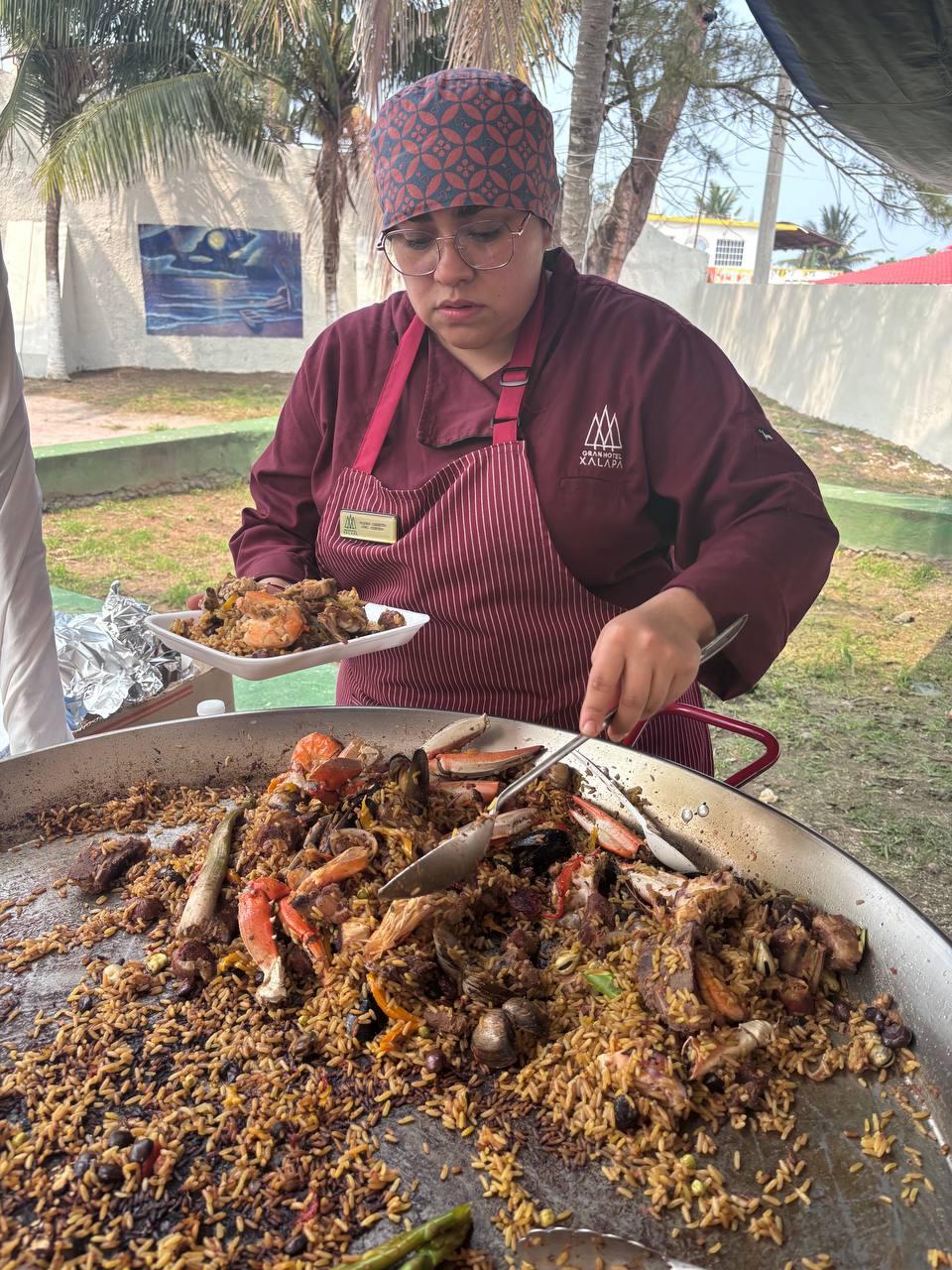 Finalmente, la Chef Elena Lizbeth Andrade Lormendez, quien asistió representando al Hotel Xalapa y que fuera ganadora del primer lugar en la edición 2025, comentó que trajo una propuesta diferente y tradicional, tratando de incorporar ingredientes de la paella valenciana con los ingredientes mexicanos; incluí frijoles criollos y borrego.