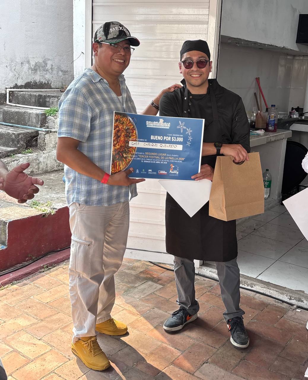 “Entrego este primer lugar a Juan José González por su participación en el Tercer Festival de la Paella 2026 que se celebró en el Parque Acuático del Hotel Chachalacas, muchas felicidades”, dijo el director Luis Octavio Hernández Lara, al entregar el premio al ganador.