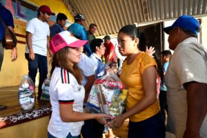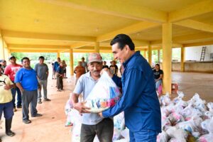 - En representación de la gobernadora Rocío Nahle García, la diputada Naomi Edith Gómez y el diputado Esteban Bautista encabezan la distribución de dos mil despensas en Pajapan, Tatahuicapan y Mecayapan.