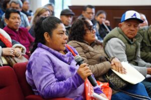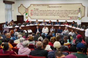 Acompañada por el Síndico Único, Dr. Marco Aurelio Martínez Sánchez, y el Secretario del Ayuntamiento, Mtro. Víctor Hugo Meza Cruz, expuso que, a través de esta estrategia de diálogo y atención directa a la población, se han resuelto casi 900 peticiones ciudadanas, la mayor parte de estas relacionadas con obra pública, drenaje, agua potable y apoyos sociales.