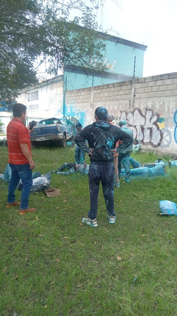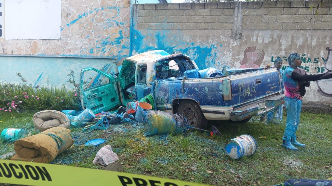 En la unidad viajaban ocho trabajadores dedicados a la pintura, quienes transportaban cubetas con pintura azul, colchonetas y ventiladores. Tras el impacto, la pintura se derramó y alcanzó a varios de los ocupantes.