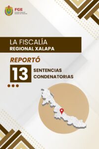 La Fiscalía Regional Córdoba informó sobre 7 sentencias condenatorias, mientras que la Fiscalía Regional Xalapa logró un total de 13 sentencias dictadas por el órgano jurisdiccional.