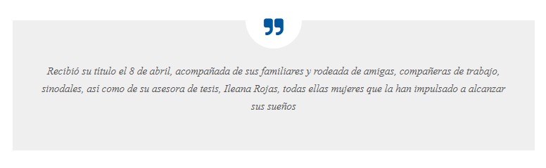 Desbordada de alegría y entre ramos de flores, Marta Elena recibió su título el 8 de abril, acompañada de sus familiares y rodeada de amigas, compañeras de trabajo, sinodales y de su asesora de tesis, Ileana Rojas, todas ellas mujeres que la han impulsado a alcanzar sus sueños.