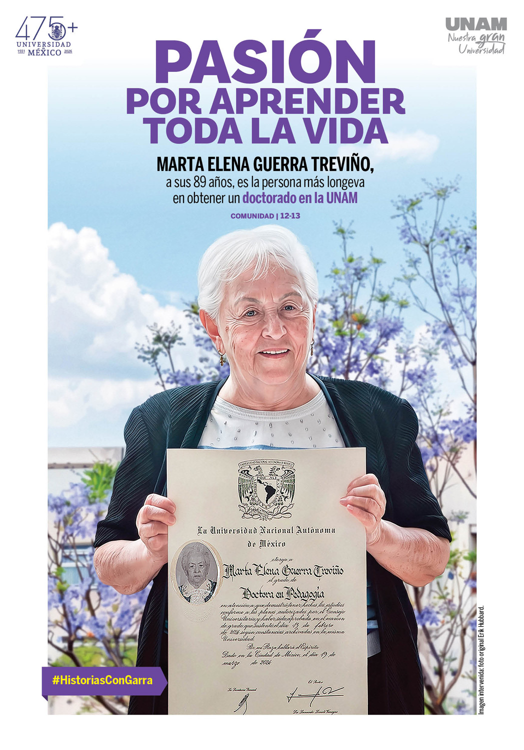 ¿Qué significa cumplir 89? Para Marta Elena Guerra Treviño la respuesta es simple: doctorarse en la UNAM y seguir haciendo lo que le apasiona tanto, aprender. “Es una satisfacción increíble el lograr una meta fijada tres décadas antes”, expresa con una alegría que envuelve la estancia del hogar que la ha visto crecer como profesionista, docente, mujer y madre.