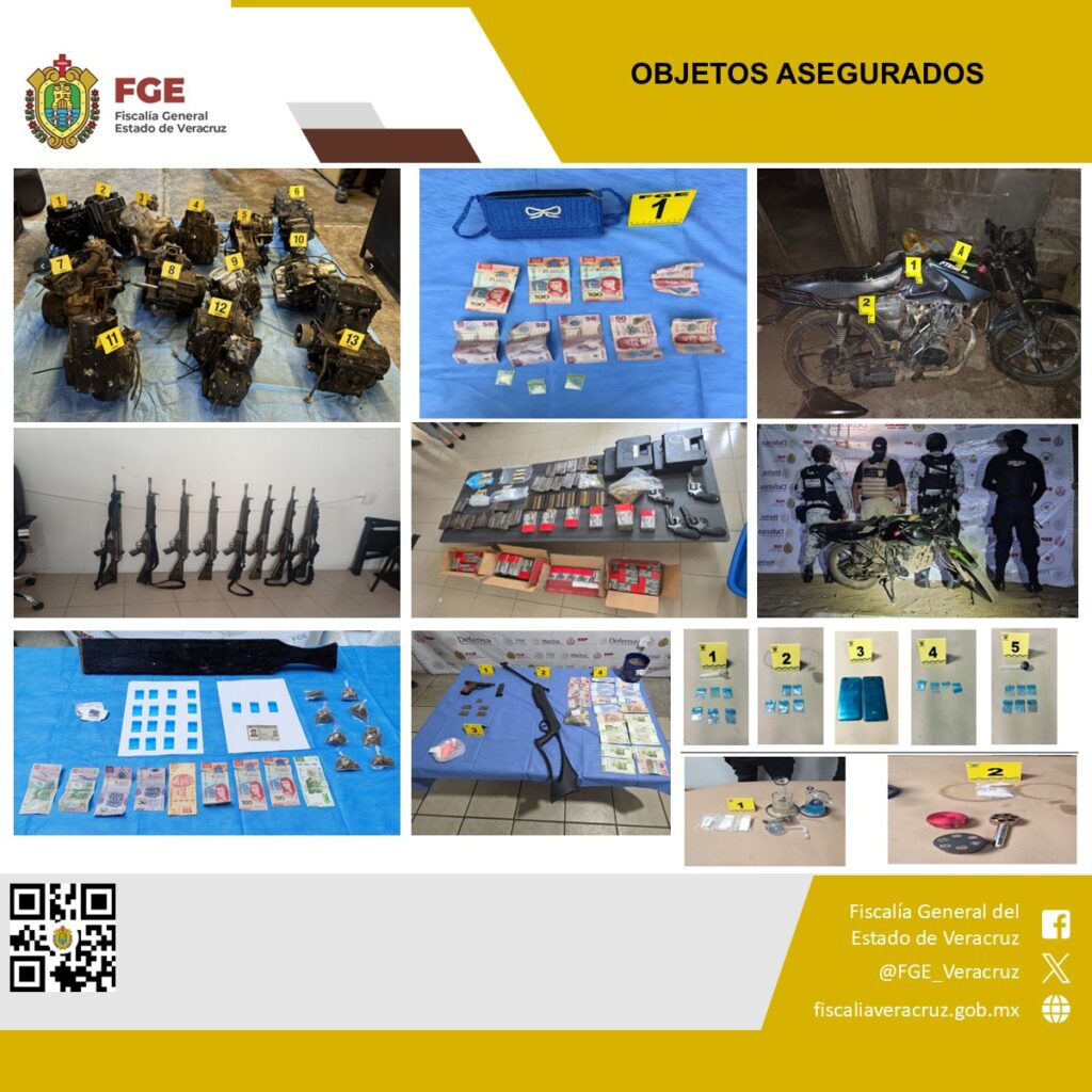 Xalapa, Ver., 20 de abril de 2026.- En el marco de una estrategia operativa orientada a fortalecer la paz social, durante el periodo del 13 al 19 de abril, la Fiscalía General del Estado de Veracruz, a través de sus fiscalías regionales, logró la detención en flagrancia de 48 personas presuntamente vinculadas a actividades ilícitas, durante la ejecución de 39 cateos autorizados por la autoridad judicial en 30 municipios.
