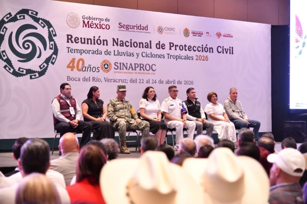 Boca del Río, Ver., 22 de abril de 2026.- Autoridades de los tres niveles de gobierno reforzaron estrategias de prevención y respuesta ante la próxima temporada de lluvias y ciclones tropicales 2026, durante la Reunión Nacional de Protección Civil celebrada en Veracruz, donde participaron más de mil 200 integrantes del Sistema Nacional de Protección Civil de las 32 entidades del país.