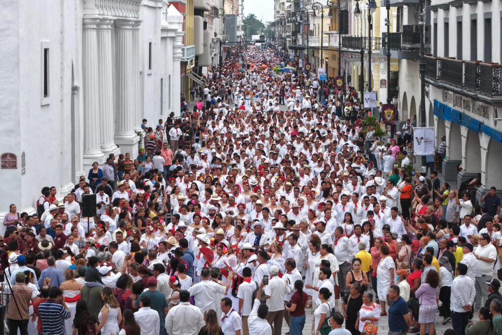 La alcaldesa de Veracruz, Rosa María Hernández Espejo, encabezó el contingente, acompañando a una multitud que hizo suyo el recorrido, entre música, zapateado y sones que despertaron la emoción a cada paso y donde voces y palmas se unieron para entonar piezas entrañables como “La Bamba” y «Veracruz», en una celebración viva de la identidad veracruzana.