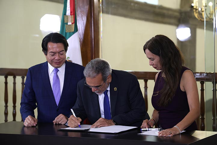 - El rector Martín Aguilar Sánchez firmó el Convenio de Colaboración Institucional, en el marco del proyecto “Abrazo Universitario al Bachillerato Nacional”