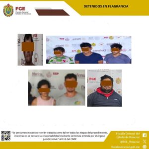 En relación con los adolescentes detenidos en flagrancia, uno de ellos fue puesto a disposición del Fiscal Especializado en Justicia Penal para Adolescentes con sede en Boca del Río, tras ser localizado durante un operativo realizado en el municipio de Paso de Ovejas. Asimismo, dos adolescentes más fueron detenidos durante un cateo realizado en el municipio de Villa Aldama, quienes también fueron puestos a disposición de la autoridad correspondiente para el seguimiento legal procedente.