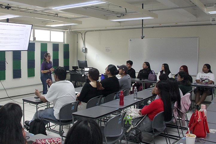 Ortiz Méndez explicó que el objetivo del taller fue sensibilizar a las alumnas y los alumnos sobre la importancia de utilizar un lenguaje que no reproduzca desigualdades, así como brindar herramientas prácticas para incorporarlo en distintos espacios de la vida académica y cotidiana.