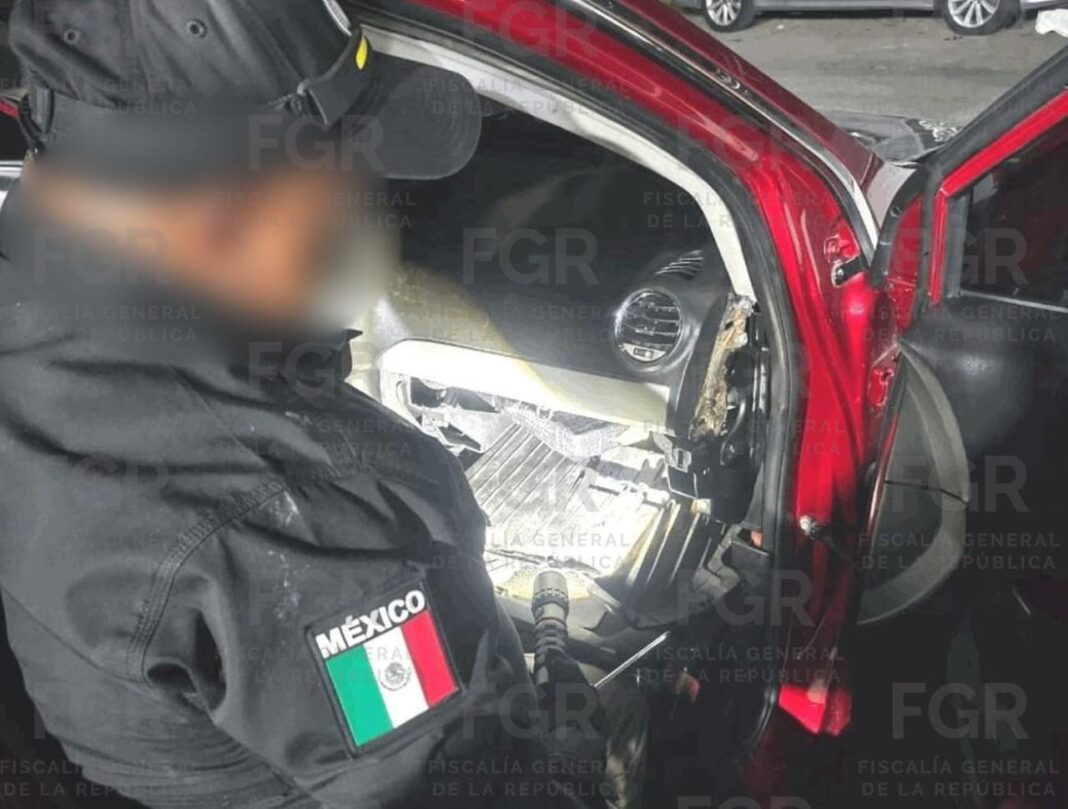 Después de que el conductor del vehículo intentó darse a la fuga, los elementos lograron detener su marcha y al realizar una revisión con ayuda de un binomio canino, localizaron 25 kilos 179 gramos de clorhidrato de cocaína, tres teléfonos celulares y un inhibidor de señal con dos antenas.