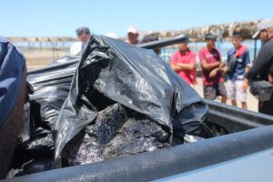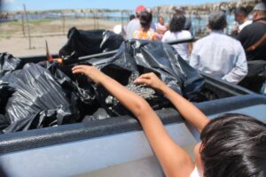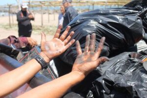 Encabezados por el alcalde Manuel Eduardo Toscano, brigadas de limpieza lograron retirar en las últimas horas 1.75 toneladas de residuos, una cifra que refleja la magnitud del problema, ya que el material contaminante sigue llegando a la costa.