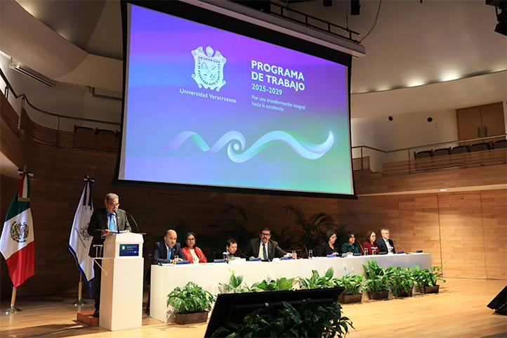 20/03/2026, Xalapa, Ver.- El rector de la Universidad Veracruzana (UV), Martín Aguilar Sánchez, presentó el Programa de Trabajo 2025-2029. Por una transformación integral hacia la excelencia, el cual guiará las acciones de la institución con el objetivo de consolidarla como un referente de innovación académica, excelencia educativa y responsabilidad social.
