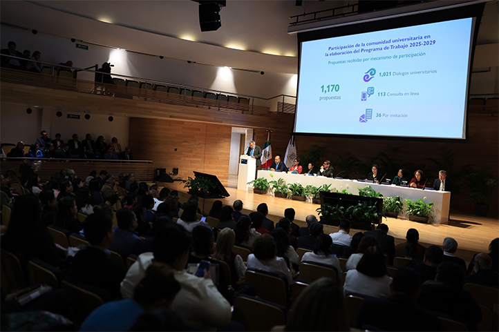 El Rector recordó que el proyecto fue elaborado a partir de un ejercicio de planeación participativa desarrollado de septiembre a noviembre de 2025, en modalidad presencial y a través de una plataforma digital institucional. En total, se recibieron mil 170 propuestas mediante tres mecanismos: mil 021 en diálogos universitarios, 113 a través de consulta en línea y 36 por invitación.
